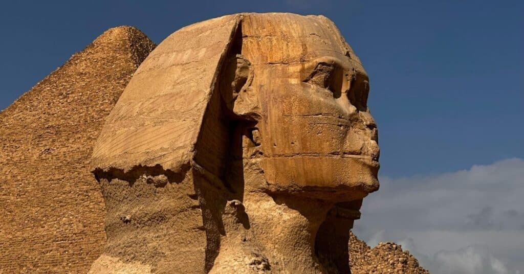 รูปปั้นขนาดยักษ์ที่มีหัวเป็นมนุษย์ และลำตัวเป็นสิงโต เป็นสัญลักษณ์ของภูมิปัญญา และพลังอำนาจแห่งอียิปต์ เชื่อกันว่ามีหน้าตาเหมือนฟาโรห์คาเฟร และสร้างขึ้นเพื่อเฝ้าสุสานคุ้มครองดินแดนศักดิ์สิทธิ์