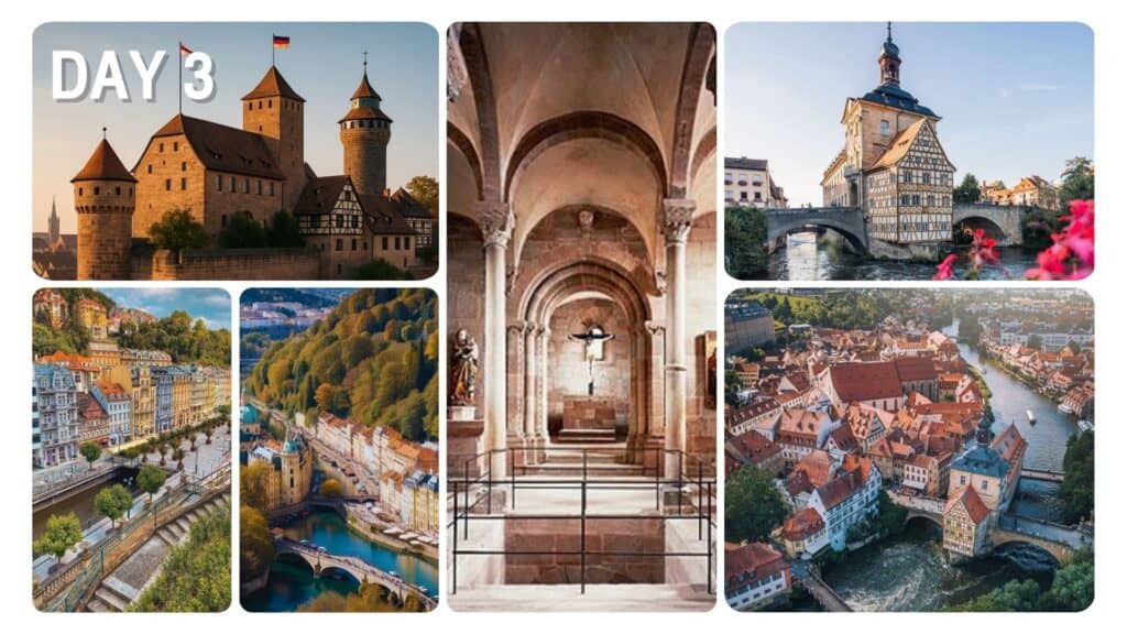 นำท่านเดินทางสู่ เมืองแบมเบิร์ก (Bamberg) เมืองมรดกโลกที่โดดเด่นด้วยวัฒนธรรมและสถาปัตยกรรมยุคกลางซึ่งได้รับการอนุรักษ์ไว้อย่างสมบูรณ์ ไฮไลต์สำคัญคือ อดีตศาลากลางเก่า (Altes Rathaus) อาคารอันเป็นเอกลักษณ์ที่ตั้งอยู่กลางสะพานข้ามแม่น้ำเร็กนิทซ์ หนึ่งในมุมถ่ายภาพชื่อดังของเมือง จากนั้นนำท่านชมและถ่ายภาพกับ มหาวิหารแบมเบิร์ก (Bamberg Cathedral) สถาปัตยกรรมแบบโรมานเนสก์อันสง่างาม ใช้เวลาเดินทางประมาณ 1 ชั่วโมง เหมาะสำหรับผู้ที่หลงใหลเสน่ห์เมืองเก่าและมรดกโลกของยุโรป