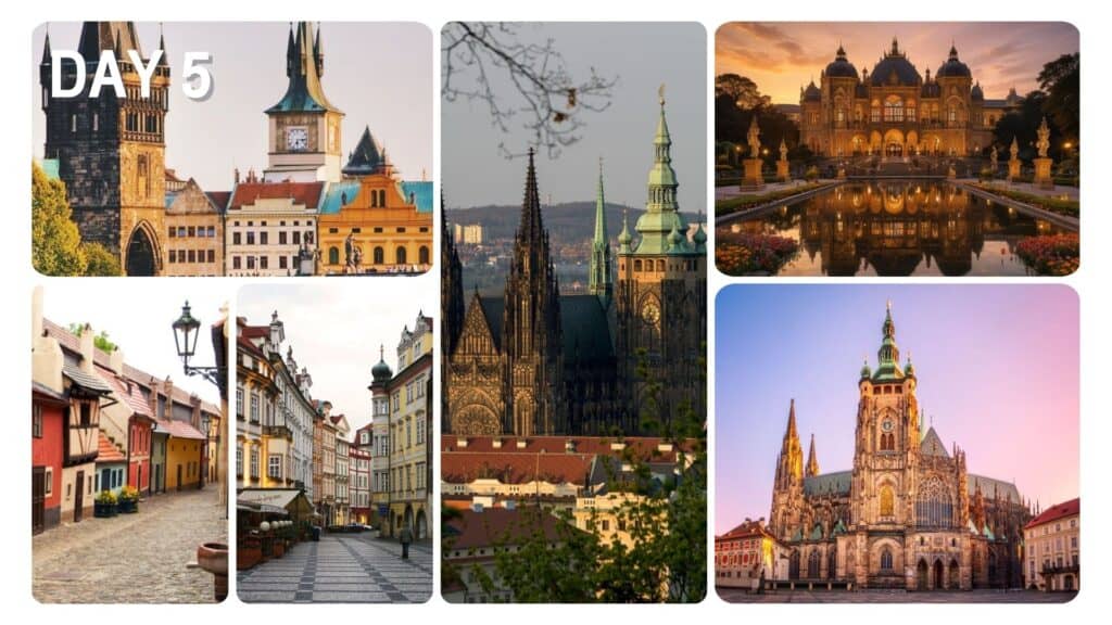 สัมผัสความงดงามของ มหาวิหารเซนต์วิตุส (St. Vitus Cathedral) มหาวิหารสถาปัตยกรรมโกธิกอันยิ่งใหญ่ใจกลาง ปราสาทปราก (Prague Castle) โดดเด่นด้วยยอดหอคอยสูง แผงกระจกสี และประตูทองสัมฤทธิ์อันวิจิตร ภายในเผยให้เห็นเพดานโค้งสูงตระหง่าน พร้อมแสงสีจากกระจกที่สะท้อนลวดลายงดงามทั่วทั้งโบสถ์ ไฮไลต์สำคัญคือหลุมฝังพระศพกษัตริย์โบฮีเมีย และ ห้องสักการะนักบุญเวนเซสลาส (St. Wenceslas Chapel) ที่ตกแต่งอย่างประณีต อีกทั้งสามารถขึ้นหอคอยเพื่อชมวิวเมืองปรากแบบพาโนรามา ถือเป็นแลนด์มาร์กสำคัญที่ไม่ควรพลาดเมื่อมาเยือนกรุงปราก