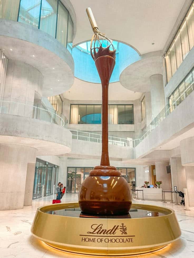 นำท่านชม Lindt Home of Chocolate พิพิธภัณฑ์ช็อกโกแลตสุดทันสมัยของแบรนด์ระดับโลกใกล้เมืองซูริก ตื่นตากับน้ำพุช็อกโกแลตยักษ์ที่มีความสูงกว่า 9 เมตร และสัมผัสเรื่องราวความเป็นมาของโกโก้ผ่านสื่อมัลติมีเดียที่น่าสนใจ ให้ท่านได้เพลิดเพลินในโซน Tasting Room เพื่อลิ้มรสช็อกโกแลตสูตรพิเศษหลากหลายรูปแบบ พร้อมเลือกซื้อของฝากที่ Lindt Chocolate Shop ซึ่งเป็นร้านช็อกโกแลตที่ใหญ่ที่สุดในโลก