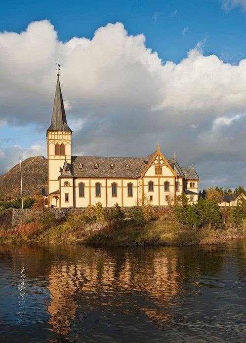 นำท่านเดินทางสู่ หมู่บ้านเฮนนิงสวาร์ (Henningsvær) หมู่บ้านชาวประมงชื่อดังแห่งหมู่เกาะโลโฟเทน ระหว่างทางแวะชม มหาวิหารโลโฟเทน (Lofoten Cathedral) หรือที่รู้จักในชื่อ Kabelvåg Church โบสถ์ไม้สไตล์นีโอโกธิก ออกแบบโดย Carl Julius Bergstrøm สร้างขึ้นในปี ค.ศ.1898 เพื่อรองรับชาวประมงจำนวนมาก โดดเด่นด้วยโครงสร้างไม้รูปกากบาท และได้รับการยกย่องว่าเป็นโบสถ์ไม้ที่ใหญ่ที่สุดทางตอนเหนือของเมือง Trondheim (ใช้เวลาเดินทางประมาณ 3.30 ชม.)