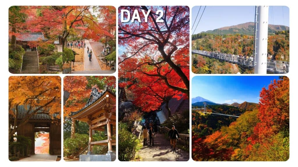 นำท่านเดินทางสู่ โกคาโนะโช (Gokanosho) ดินแดนหุบเขาลับแลแห่งจังหวัดคุมาโมโตะ ที่โอบล้อมด้วยธรรมชาติบริสุทธิ์และบรรยากาศสงบ ได้รับขนานนามว่า “หมู่บ้านในตำนานแห่งคิวชู” ช่วงฤดูใบไม้ร่วงหมู่บ้านจะเปลี่ยนสีสันสดใสจากใบเมเปิ้ลและแปะก๊วย โดยเฉพาะบริเวณ สะพานแขวน Momigi Bridge และ น้ำตก Sendan Todoro ที่กลายเป็นฉากหลังอันงดงามของหุบเขา
