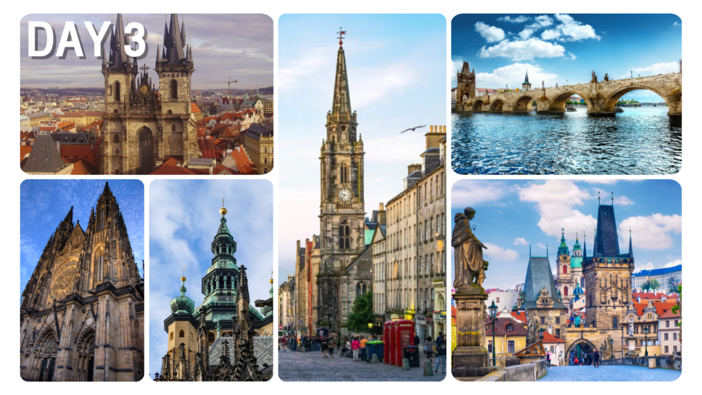 นำท่านเข้าชม ปราสาทแห่งกรุงปราก (PRAGUE CASTLE) สร้างขึ้นในคริสต์ศตวรรษที่11 ด้วยศิลปะแบบโกธิคเคยได้รับการรับรองจากกินเนสส์บุ๊คว่าเป็นปราสาทโบราณที่ใหญ่ที่สุดในโลก ปัจจุบัน ได้เป็นที่พำนักของประธานาธิบดีสาธารณรัฐเชก ชมความใหญ่โตโอ่อ่าของตัวปราสาท และโบสถ์เซนต์ไวตัส ที่เด่นเป็นสง่าแต่ละลานกว้างประดับประดาไปด้วยน้ำพุรูปปั้นนักบุญ โบสถ์เซนต์จอร์จและคอนแวนต์รวมทั้ง โอลด์รอยัลพาเลซ (พระราชวังเก่า)และ โกลเด้นเลน (ถนนสายทองคำ) ซึ่งเคยเป็นที่พำนักของช่างฝีมือในยุค สมัยก่อนที่จะทำให้ท่านย้อนไปถึงความยิ่งใหญ่ของโบฮีเมียในอดีต