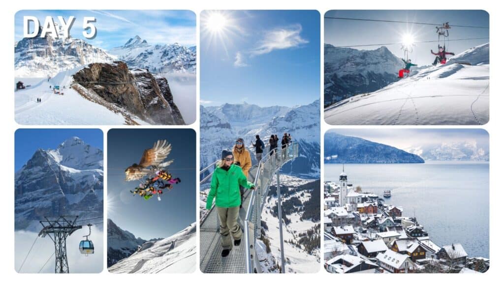นำท่านเข้าสู่ หมู่บ้านมูร์เรน (Mürren) หมู่บ้านบนภูเขาสุดโรแมนติกที่งดงามราวเทพนิยาย ตั้งอยู่บนความสูงกว่า 1,600 เมตร ท่ามกลางเทือกเขา Eiger, Mönch และ Jungfrau ที่ปกคลุมด้วยหิมะขาวโพลน หมู่บ้านแห่งนี้เงียบสงบ ปราศจากรถยนต์ ให้บรรยากาศอบอุ่นและเป็นส่วนตัว เพลิดเพลินกับการเดินชมบ้านไม้สไตล์ชาเล่ต์ ร้านกาแฟเล็ก ๆ และวิวหุบเขา Lauterbrunnen ที่สวยจับใจ ราวกับหลุดเข้าไปอยู่ในโลกแห่งสโนว์แลนด์จริง ๆ